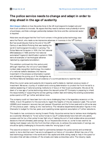 Nick Gargan reflects on how the police force in the UK must respond to budget cuts and how it can continue to innovate. He argues that they need to behave more prudently in terms of purchases, and that a stronger partnership between the force and the commercial sector is required.