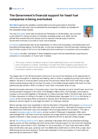 The Government’s financial support for fossil fuel companies is being overlooked
