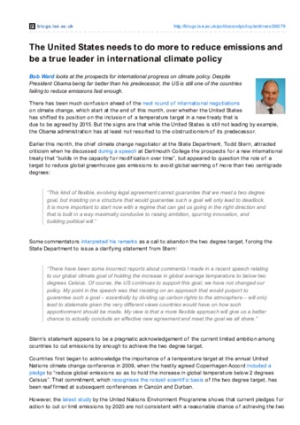 Bob Ward looks at the prospects for international progress on climate policy. Despite President Obama being far better than his predecessor, the US is still one of the countries failing to reduce emissions fast enough.