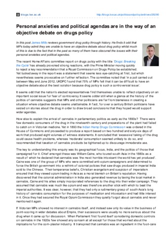 In this post James Mills reviews government drug policy through history. He finds it odd that MPs today admit they are unable to have an objective debate about drug policy whilst much of this is due to the fact that in the past so many of them have obscured the issues with their personal anxieties and political agendas.