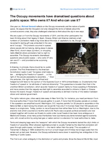 The Occupy movements have dramatised questions about public space: who owns it? And who can use it?