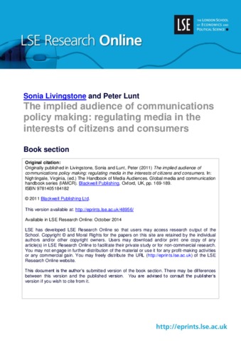 The implied audience of communications policy making: regulating media in the interests of citizens and consumers