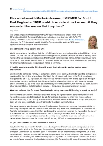 Five minutes with Marta Andreasen, UKIP MEP for South East England – “UKIP could do more to attract women if they respected the women that they have”.