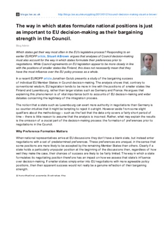 The way in which states formulate national positions is just as important to EU decision-making as their bargaining strength in the Council.