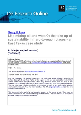 Like mixing oil and water?: the take up of sustainability in hard-to-reach places - an East Texas case study