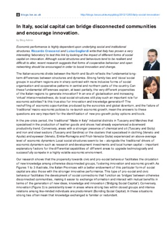 In Italy, social capital can bridge disconnected communities and encourage innovation.
