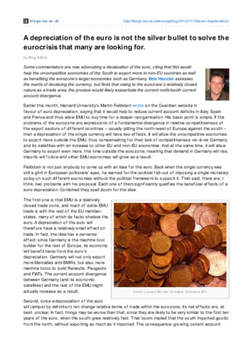 A depreciation of the euro is not the silver bullet to solve the eurocrisis that many are looking for