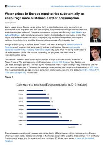 Water prices in Europe need to rise substantially to encourage more sustainable water consumption