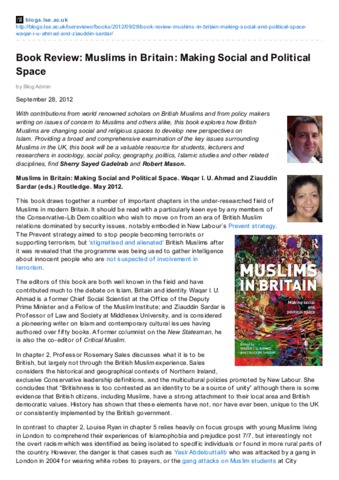 Book review: muslims in Britain: making social and political space