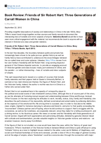 Book review: friends of Sir Robert Hart: three generations ofcarrall women in China.