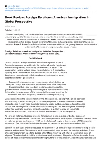 Book Review: foreign relations: American immigration in global perspective