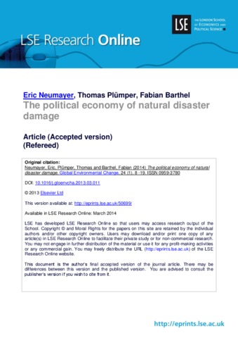 | Keywords | natural disaster,economic damage,hazard,political economy |