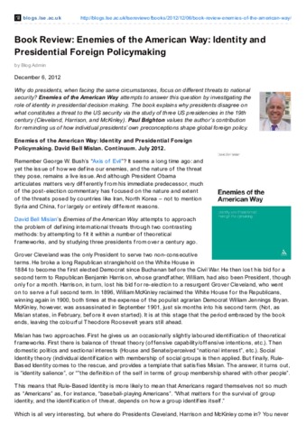Book review: enemies of the American way: identity and presidential foreign policymaking.