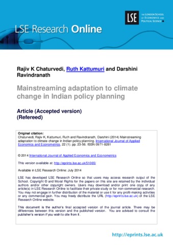 Mainstreaming adaptation to climate change in Indian policy planning