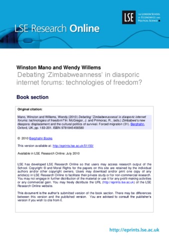 Debating ‘Zimbabweanness’ in diasporic internet forums: technologies of freedom?