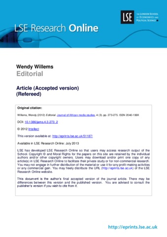 Journal of African Media Studies, 4 (3).