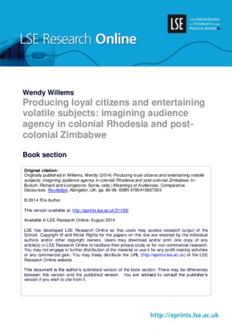 Producing loyal citizens and entertaining volatile subjects: imagining audience agency in colonial Rhodesia and post-colonial Zimbabwe.