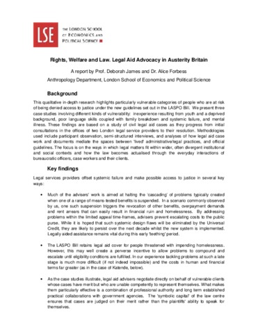 Rights, welfare and law. Legal aid advocacy in austerity Britain