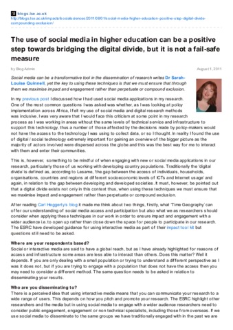 The use of social media in higher education can be a positive step towards bridging the digital divide, but it is not a fail-safe measure