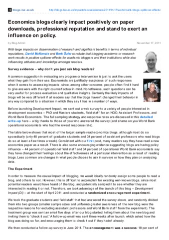 Economics blogs clearly impact positively on paper downloads, professional reputation and stand to exert an influence on policy