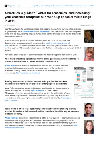 Altmetrics, a guide to Twitter for academics, and increasing your academic footprint: our round-up of social media blogs in 2011