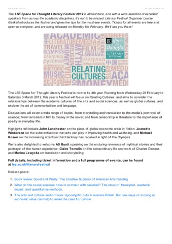 LSE Space for Thought Literary Festival 2012: bringing the arts and social sciences together
