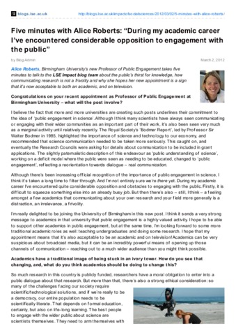 Roberts, Alice; and Blog Admin, Impact of Social Sciences