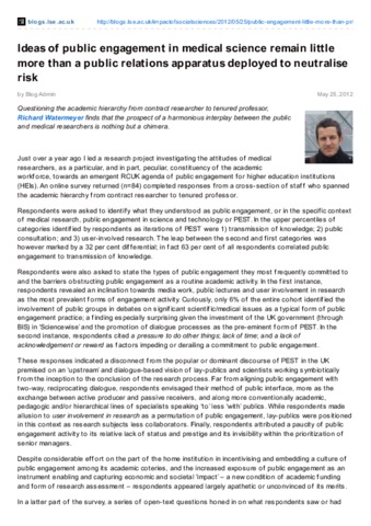 Ideas of public engagement in medical science remain little more than a public relations apparatus deployed to neutralise risk