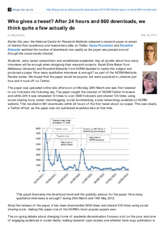 Earlier this year, the National Centre for Research Methods released a research paper to waves of interest from academics and researchers alike on Twitter. Kaisa Puustinen and Rosalind Edwards watched the number of downloads rise rapidly as the paper was passed around through the social media channel.