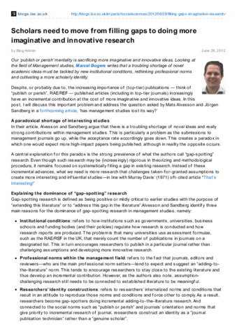 Scholars need to move from filling gaps to doing more imaginative and innovative research