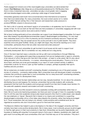 Public engagement remains one of the most tangible ways universities can demonstrate their impact. Fred Robinson finds that in a time of stretched resources, universities can play a much greater role in engaging with local disadvantaged communities, producing a wide-range of mutual benefits.