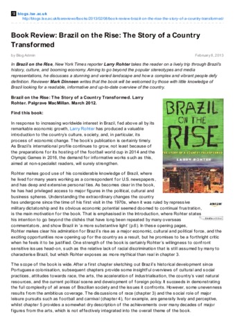 Book review: Brazil on the rise: the story of a countrytransformed.