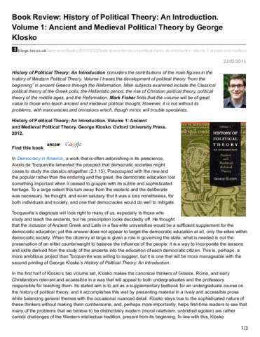 Book review: History of political theory: an introduction.Volume 1: ancient and medieval political theory