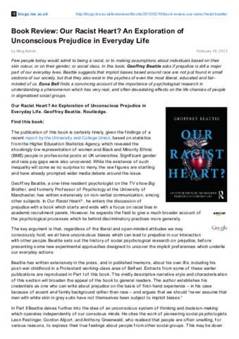 Book review: Our racist heart? An exploration of unconscious prejudice in everyday life.