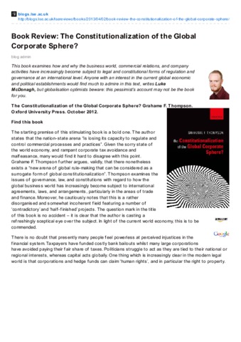 Book review: The constitutionalization of the globalcorporate sphere?