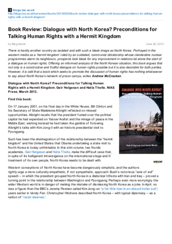 Book review: Dialogue with North Korea? Preconditions for talking human rights with a hermit kingdom