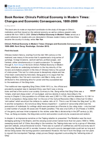 Book review: China’s political economy in modern times: changes and economic consequences, 1800-2000
