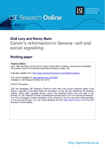 As Weber (1904) recognized, Calvinistic beliefs about predestination may constitute a powerful incentive for good works; an individual wishes to receive assurances about her future prospects of salvation, and good works may provide a positive signal about such prospects. These beliefs can in turn create a social pressure to behave well, as good works can also signal to others that individuals belong to the “elect” and are therefore likely to behave well in social interactions. Moreover, the Consistory, an institution created by Calvin to monitor and publicize individuals’ behaviour, can allow for such social signalling. We analyze these self and social signalling incentives, and show how religions affect levels of cooperation and coordination.