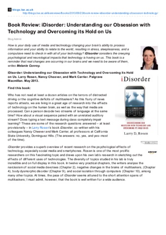 Book review: iDisorder: understanding our obsession with technology and overcoming its hold on us.