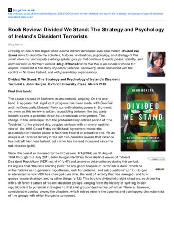 Book review: divided we stand: the strategy and psychology of Ireland’s dissident terrorists