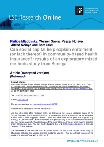 Can social capital help explain enrolment (or lack thereof) in community-based health insurance?: results of an exploratory mixed methods study from Senegal