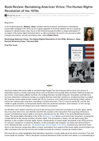 Book Review: Reclaiming American virtue: the human rights revolution of the 1970s
