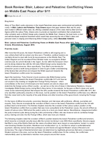 Book review: Blair, Labour and Palestine: conflicting views on Middle East peace after 9/11