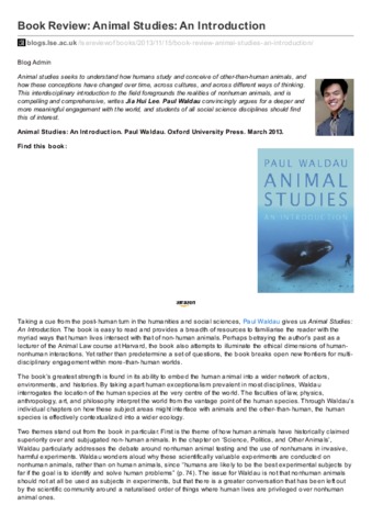 Book review: animal studies: an introduction