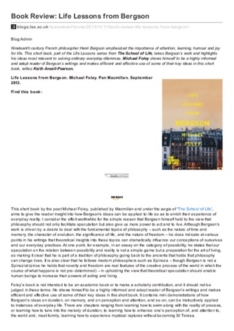 Nineteenth century French philosopher Henri Bergson emphasized the importance of attention, learning, humour and joy for life. This short book, part of the Life Lessons series from The School of Life, takes Bergson’s work and highlights his ideas most relevant to solving ordinary everyday dilemmas. Michael Foley shows himself to be a highly informed and adept reader of Bergson’s writings and makes efficient and effective use of some of their key ideas in this short book, writes Keith Ansell-Pearson.
