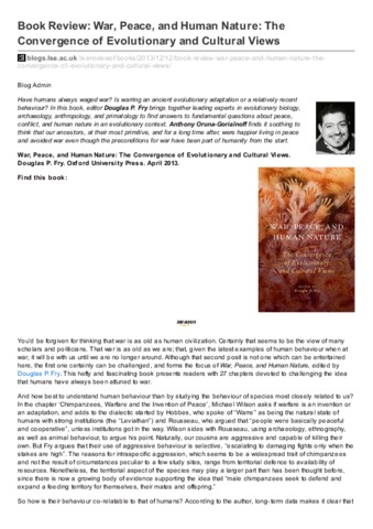Book Review: war, peace, and human nature: the convergence of evolutionary and cultural views