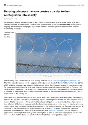 Denying prisoners the vote creates a barrier to theirreintegration into society
