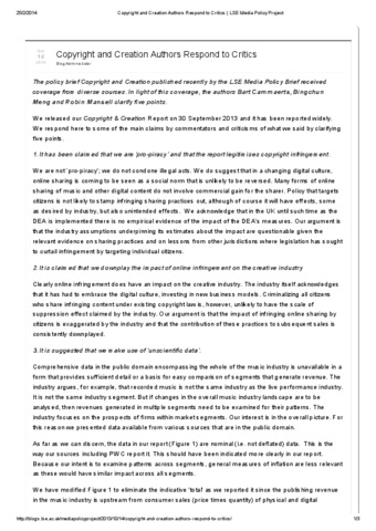 The policy brief Copyright and Creation published recently by the LSE Media Policy Brief received coverage from diverse sources. In light of this coverage, the authors Bart Cammaerts, Bingchun Meng and Robin Mansell clarify five points.
