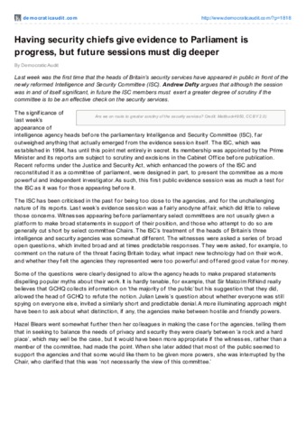 Having security chiefs give evidence to Parliament isprogress, but future sessions must dig deeper