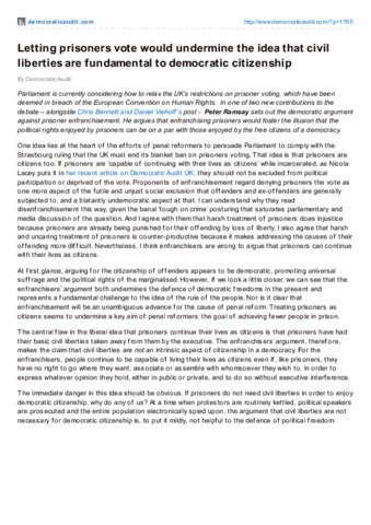 Letting prisoners vote would undermine the idea that civilliberties are fundamental to democratic citizenship